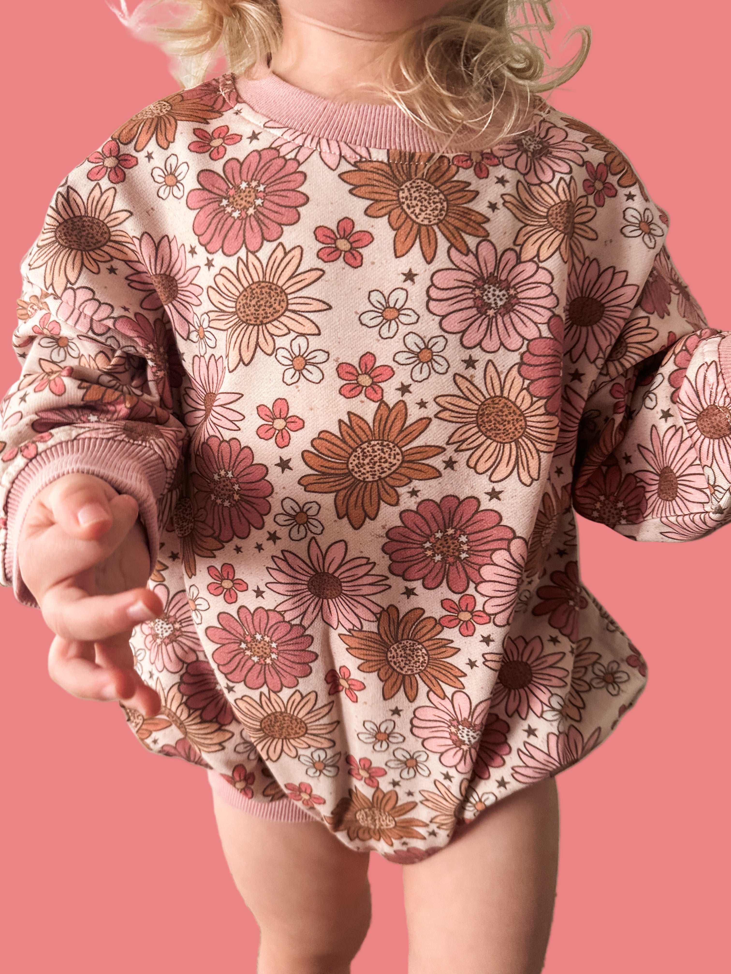 Oversized T-shirt Bubble Romper- Boho Daisy Check