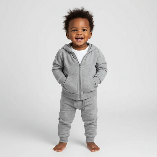 Stone Gray Organic Cotton 2-Piece Zip Jogger Sweatsuit