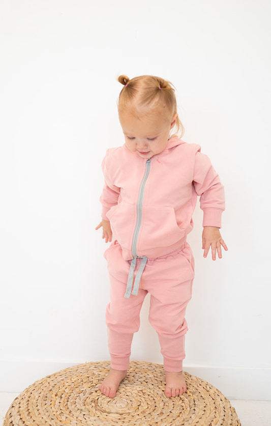 Pink Rose Organic Cotton 2-Piece Zip Jogger Sweatsuit