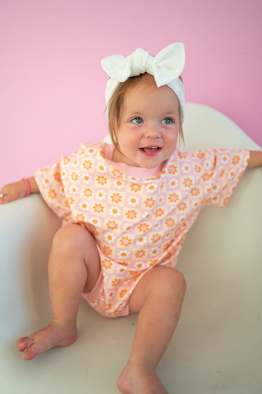 Oversized T-shirt Bubble Romper- Boho Daisy Check
