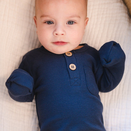 Navy Ribbed Cotton Bodysuit