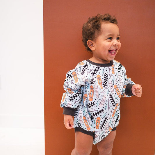 Oversized Cozy Romper - Retro Skateboard