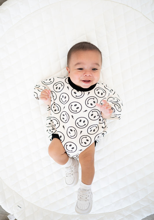 Oversized T-shirt Bubble Romper- Electric Smiley