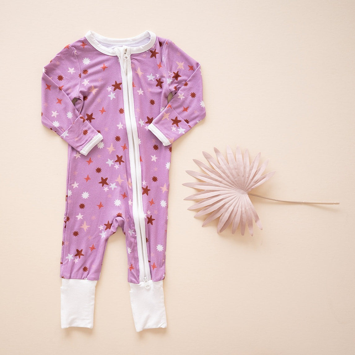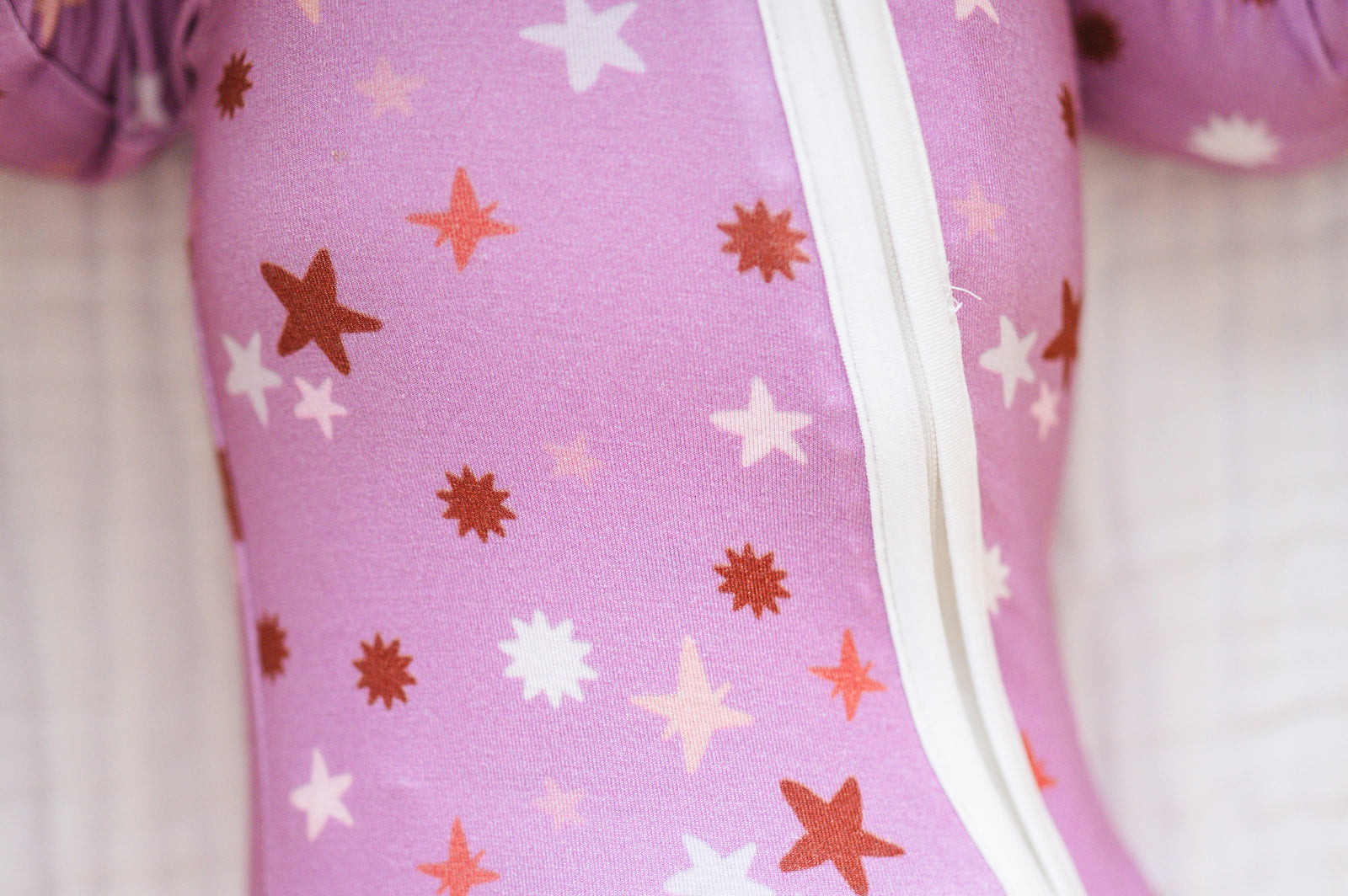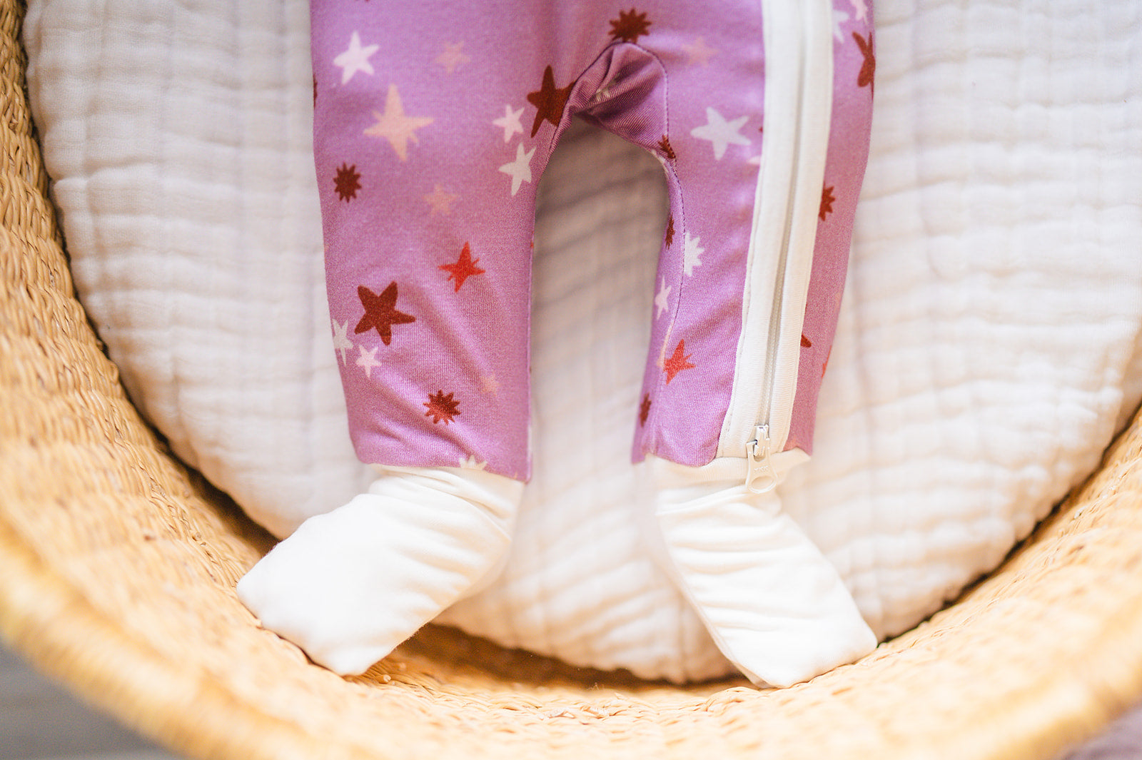 Our Bamboo rompers are made from a premium blend of 94% Bamboo Viscose and 6% spandex, ensuring a soft and stretchy fit for your baby's sleep and playtime. The bamboo fabric naturally regulates temperature and is gentle on sensitive skin. Our design includes convenient features such as 2-way zippers, fold-over feet and mittens, and no itchy neck tags for extra comfort.
